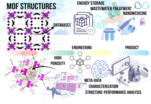 In 2025, WG4 published a collaborative JACS perspective on artificial‑intelligence paradigms for next‑generation MOF research, highlighting the growing role of data‑centric and language‑model‑based tools (more details). Future plans include establishing a standardized, expandable database linking synthesis, properties, and modelling data for key applications.